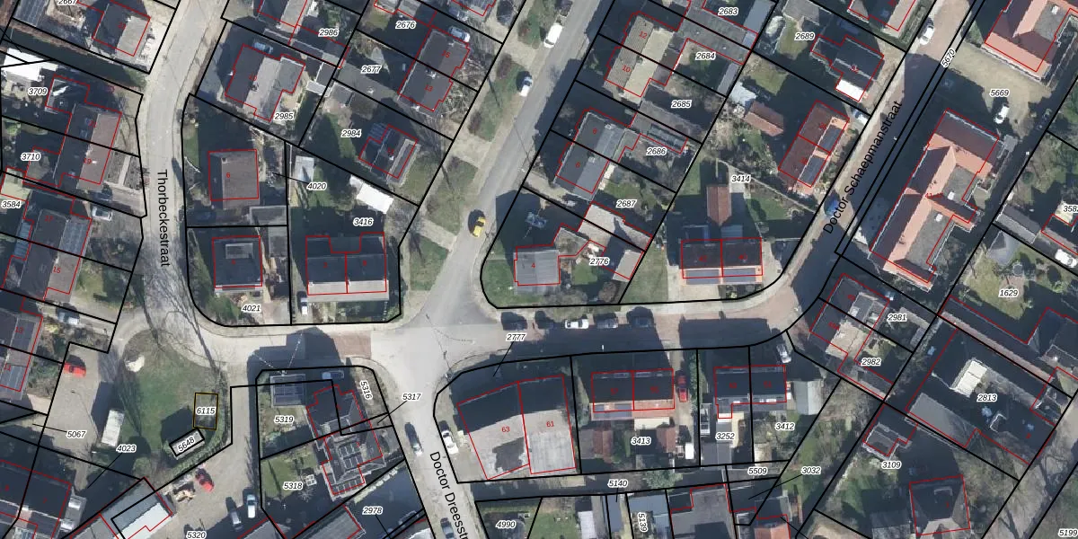 Gebruik de zoekbalk of klik op een perceel voor informatie over de adressen binnen dit perceel.