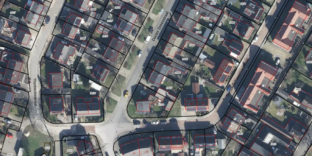 Het perceel waarop Doctor Dreesstraat 6 staat heeft een oppervlakte van 310 m². Dit is een groot perceel. De perceeloppervlakte wordt geregistreerd door het Kadaster. Gedetailleerde informatie over de maten van dit perceel kunt u vinden in het rapport Kadastrale kaart met maatvoering van Doctor Dreesstraat 6.