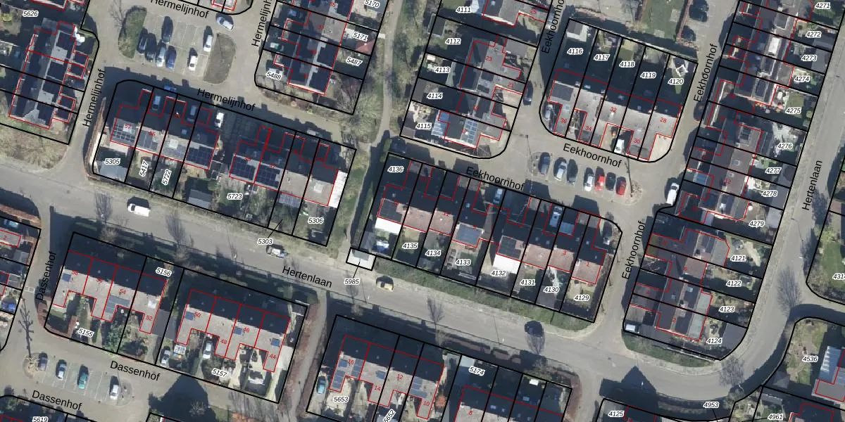 Het perceel waarop Eekhoornhof 13 staat heeft een oppervlakte van 146 m². Dit is een middelgroot perceel. De perceeloppervlakte wordt geregistreerd door het Kadaster. Gedetailleerde informatie over de maten van dit perceel kunt u vinden in het rapport Kadastrale kaart met maatvoering van Eekhoornhof 13.