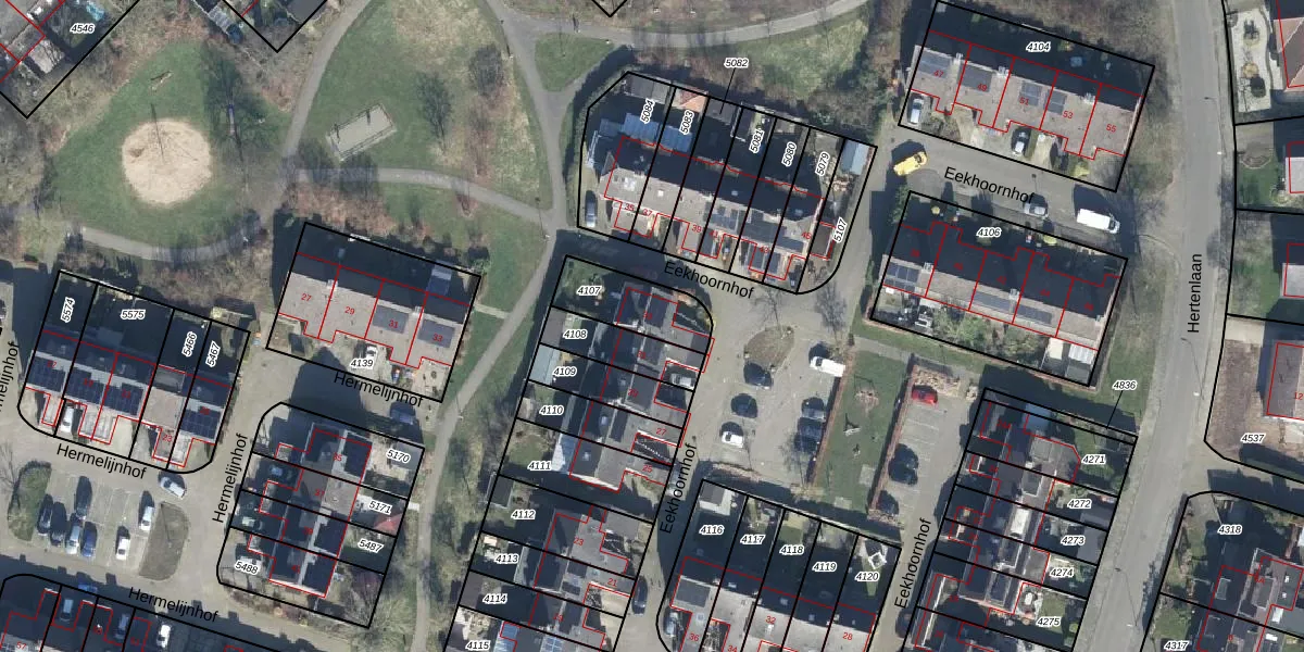 Het perceel waarop Eekhoornhof 33 staat heeft een oppervlakte van 197 m². Dit is een middelgroot perceel. De perceeloppervlakte wordt geregistreerd door het Kadaster. Gedetailleerde informatie over de maten van dit perceel kunt u vinden in het rapport Kadastrale kaart met maatvoering van Eekhoornhof 33.