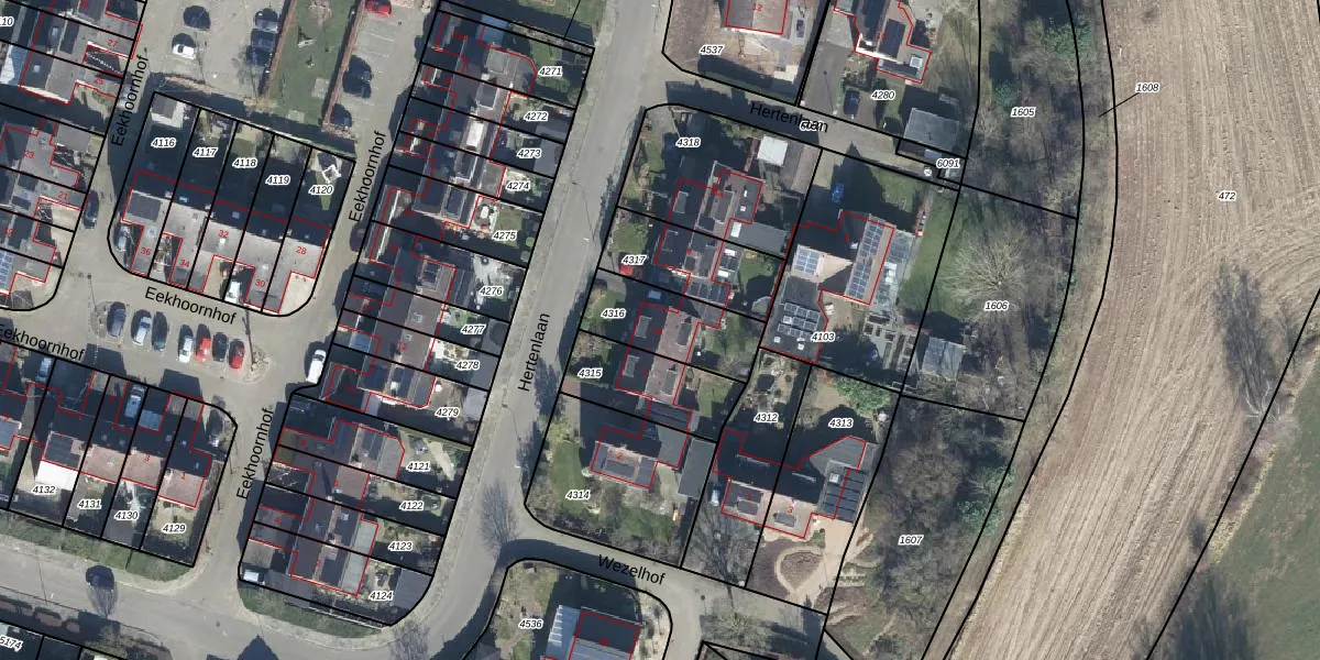 Hertenlaan 4-A is gelegen op kadastraal perceel WIS00E4316. Deze kadastrale aanduiding is uniek en wordt gebruikt door het Kadaster om eigendomsrechten en andere zakelijke rechten vast te leggen. Het perceel maakt onderdeel uit van de kadastrale gemeente Wisch.