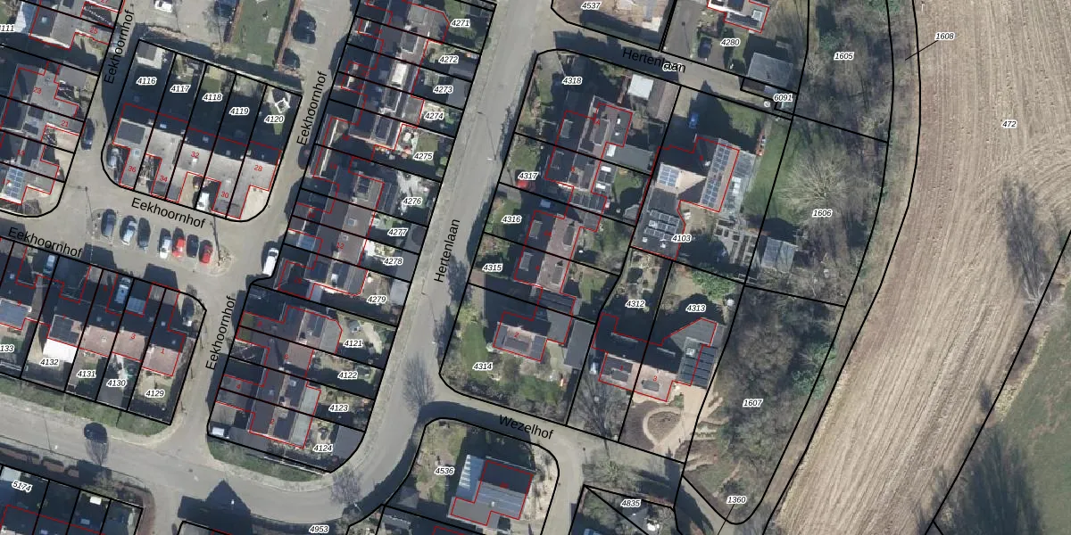Hertenlaan 4 is gelegen op kadastraal perceel WIS00E4315. Deze kadastrale aanduiding is uniek en wordt gebruikt door het Kadaster om eigendomsrechten en andere zakelijke rechten vast te leggen. Het perceel maakt onderdeel uit van de kadastrale gemeente Wisch.