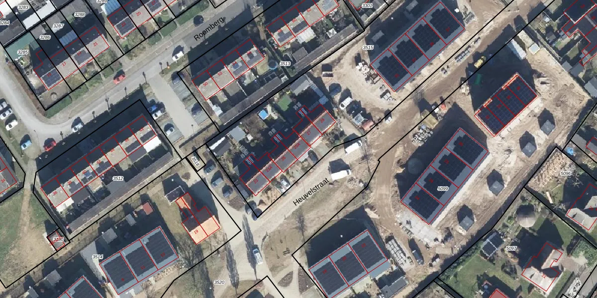 Het perceel waarop Heuvelstraat 25-A staat heeft een oppervlakte van 3810 m². Dit is een zeer groot perceel. De perceeloppervlakte wordt geregistreerd door het Kadaster. Gedetailleerde informatie over de maten van dit perceel kunt u vinden in het rapport Kadastrale kaart met maatvoering van Heuvelstraat 25-A.