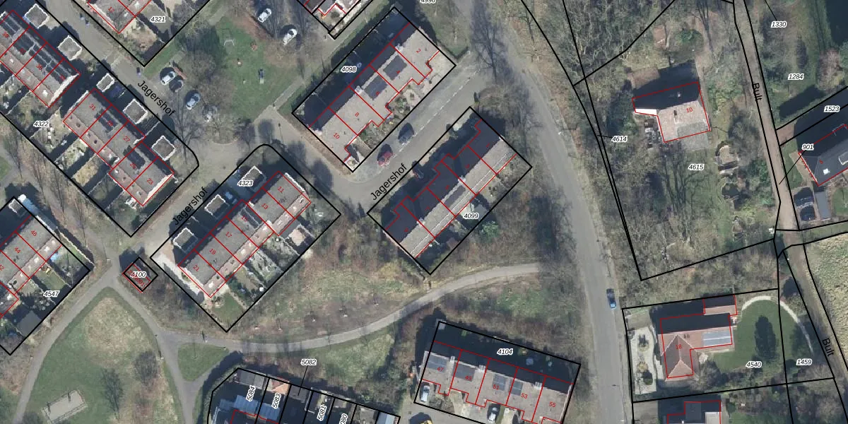 Het perceel waarop Jagershof 7 staat heeft een oppervlakte van 700 m². Dit is een groot perceel. De perceeloppervlakte wordt geregistreerd door het Kadaster. Gedetailleerde informatie over de maten van dit perceel kunt u vinden in het rapport Kadastrale kaart met maatvoering van Jagershof 7.