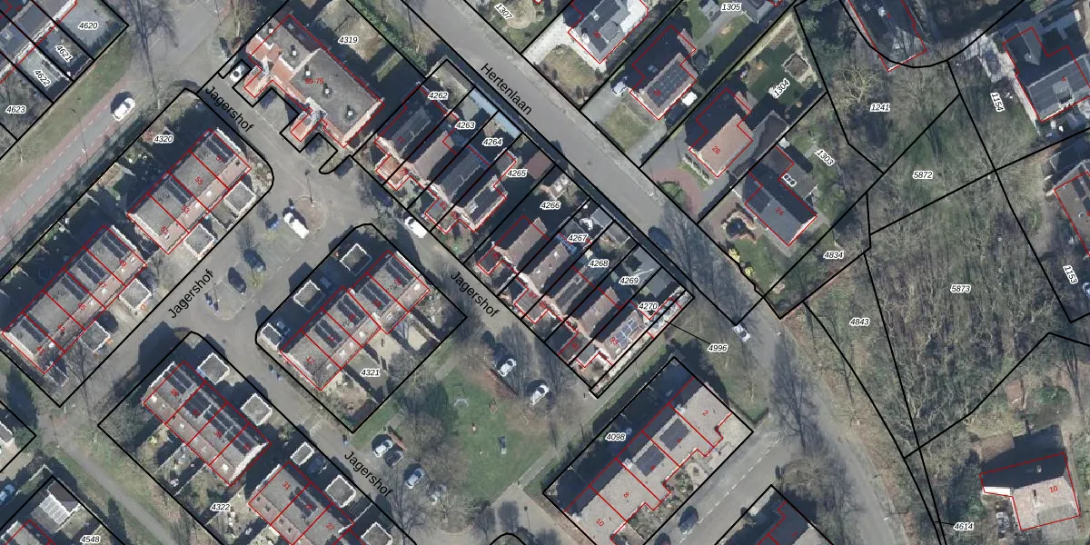 Het perceel waarop Jagershof 87 staat heeft een oppervlakte van 152 m². Dit is een middelgroot perceel. De perceeloppervlakte wordt geregistreerd door het Kadaster. Gedetailleerde informatie over de maten van dit perceel kunt u vinden in het rapport Kadastrale kaart met maatvoering van Jagershof 87.