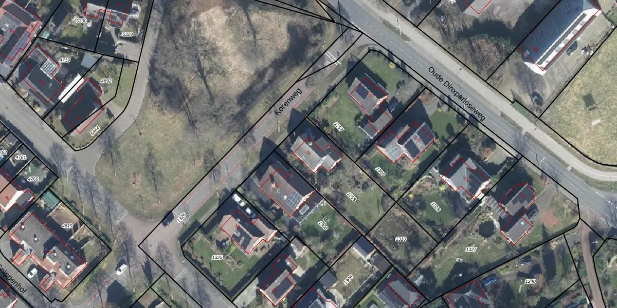 Het perceel waarop Korenweg 56 staat heeft een oppervlakte van 618 m². Dit is een groot perceel. De perceeloppervlakte wordt geregistreerd door het Kadaster. Gedetailleerde informatie over de maten van dit perceel kunt u vinden in het rapport Kadastrale kaart met maatvoering van Korenweg 56.