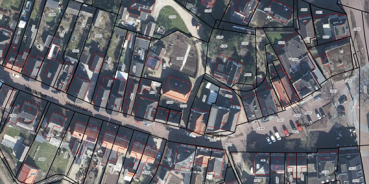 Het perceel waarop Marktstraat 4 staat heeft een oppervlakte van 1130 m². Dit is een zeer groot perceel. De perceeloppervlakte wordt geregistreerd door het Kadaster. Gedetailleerde informatie over de maten van dit perceel kunt u vinden in het rapport Kadastrale kaart met maatvoering van Marktstraat 4.