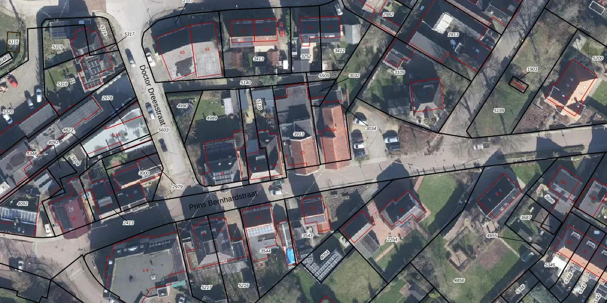 Het perceel waarop Prins Bernhardstraat 23 staat heeft een oppervlakte van 349 m². Dit is een groot perceel. De perceeloppervlakte wordt geregistreerd door het Kadaster. Gedetailleerde informatie over de maten van dit perceel kunt u vinden in het rapport Kadastrale kaart met maatvoering van Prins Bernhardstraat 23.