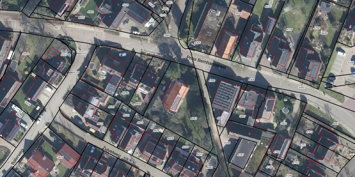 Het perceel waarop Prins Bernhardstraat 56 staat heeft een oppervlakte van 1099 m². Dit is een zeer groot perceel. De perceeloppervlakte wordt geregistreerd door het Kadaster. Gedetailleerde informatie over de maten van dit perceel kunt u vinden in het rapport Kadastrale kaart met maatvoering van Prins Bernhardstraat 56.