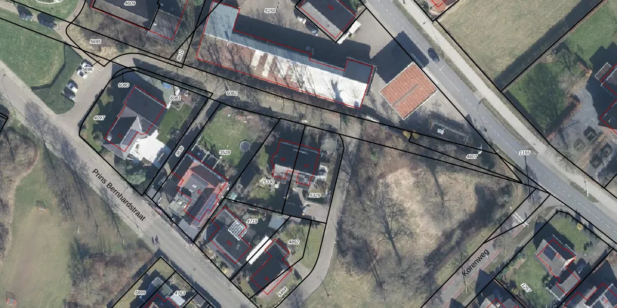 Het perceel waarop Prins Bernhardstraat 97 staat heeft een oppervlakte van 415 m². Dit is een groot perceel. De perceeloppervlakte wordt geregistreerd door het Kadaster. Gedetailleerde informatie over de maten van dit perceel kunt u vinden in het rapport Kadastrale kaart met maatvoering van Prins Bernhardstraat 97.