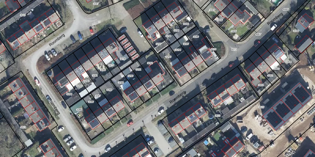 Het perceel waarop Roomberg 29 staat heeft een oppervlakte van 291 m². Dit is een middelgroot perceel. De perceeloppervlakte wordt geregistreerd door het Kadaster. Gedetailleerde informatie over de maten van dit perceel kunt u vinden in het rapport Kadastrale kaart met maatvoering van Roomberg 29.