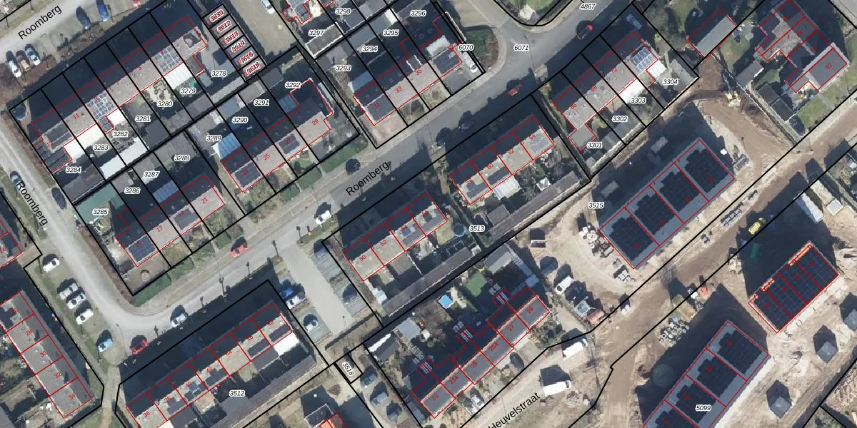 Het perceel waarop Roomberg 56 staat heeft een oppervlakte van 1483 m². Dit is een zeer groot perceel. De perceeloppervlakte wordt geregistreerd door het Kadaster. Gedetailleerde informatie over de maten van dit perceel kunt u vinden in het rapport Kadastrale kaart met maatvoering van Roomberg 56.