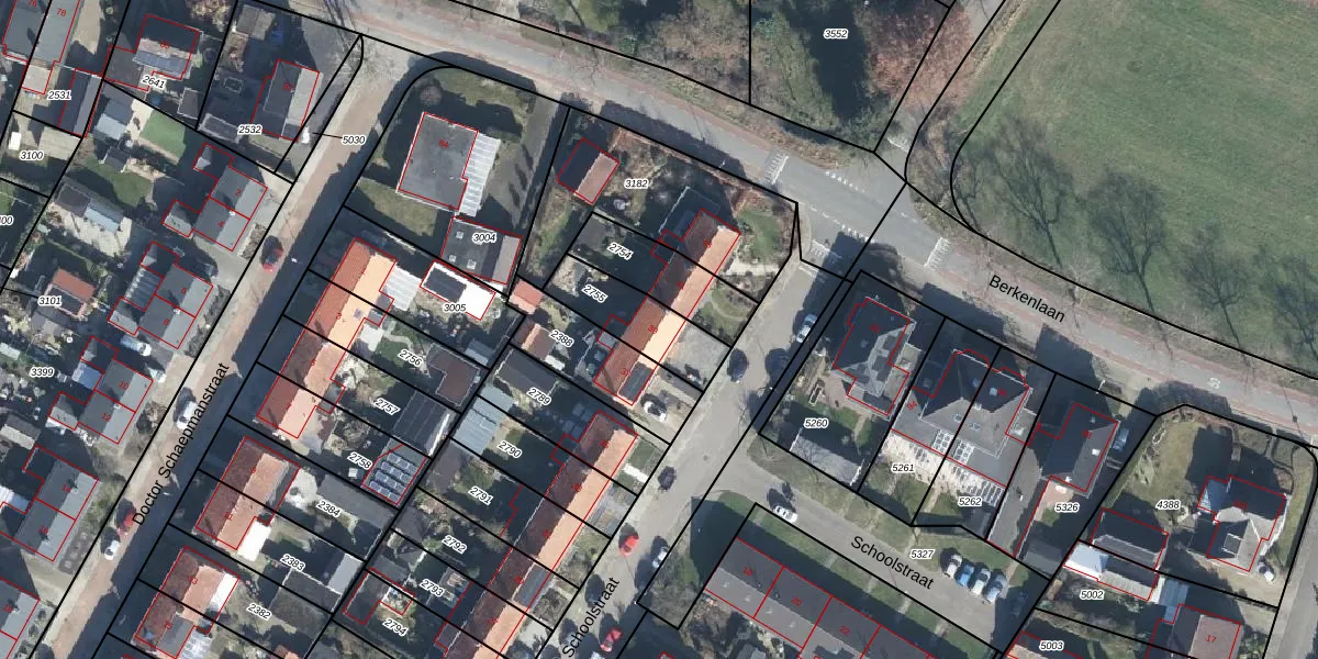 Het perceel waarop Schoolstraat 39 staat heeft een oppervlakte van 214 m². Dit is een middelgroot perceel. De perceeloppervlakte wordt geregistreerd door het Kadaster. Gedetailleerde informatie over de maten van dit perceel kunt u vinden in het rapport Kadastrale kaart met maatvoering van Schoolstraat 39.