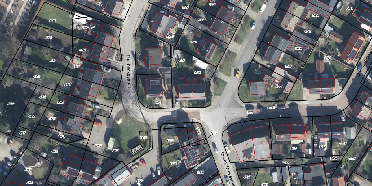 Het perceel waarop Thorbeckestraat 2 staat heeft een oppervlakte van 590 m². Dit is een groot perceel. De perceeloppervlakte wordt geregistreerd door het Kadaster. Gedetailleerde informatie over de maten van dit perceel kunt u vinden in het rapport Kadastrale kaart met maatvoering van Thorbeckestraat 2.