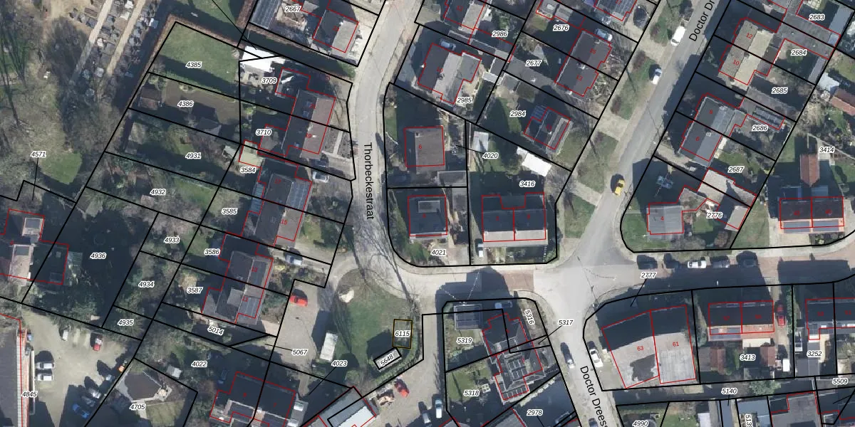 Het perceel waarop Thorbeckestraat 4 staat heeft een oppervlakte van 365 m². Dit is een groot perceel. De perceeloppervlakte wordt geregistreerd door het Kadaster. Gedetailleerde informatie over de maten van dit perceel kunt u vinden in het rapport Kadastrale kaart met maatvoering van Thorbeckestraat 4.
