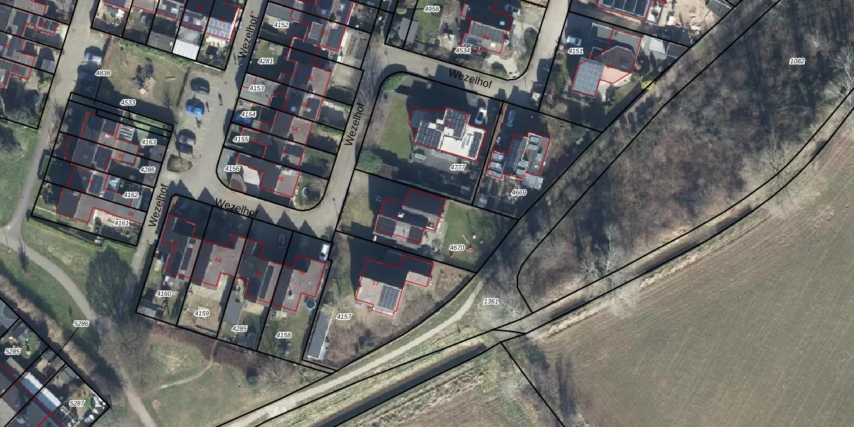 Het perceel waarop Wezelhof 15 staat heeft een oppervlakte van 562 m². Dit is een groot perceel. De perceeloppervlakte wordt geregistreerd door het Kadaster. Gedetailleerde informatie over de maten van dit perceel kunt u vinden in het rapport Kadastrale kaart met maatvoering van Wezelhof 15.