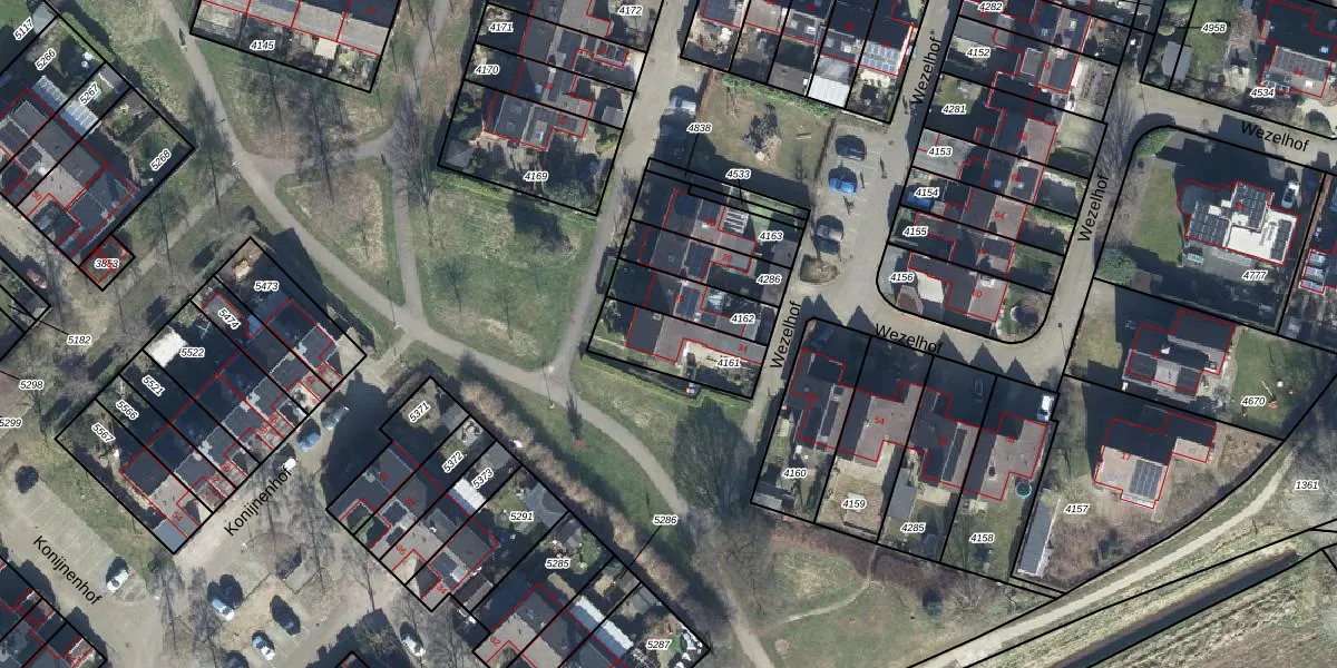 Het perceel waarop Wezelhof 34 staat heeft een oppervlakte van 209 m². Dit is een middelgroot perceel. De perceeloppervlakte wordt geregistreerd door het Kadaster. Gedetailleerde informatie over de maten van dit perceel kunt u vinden in het rapport Kadastrale kaart met maatvoering van Wezelhof 34.