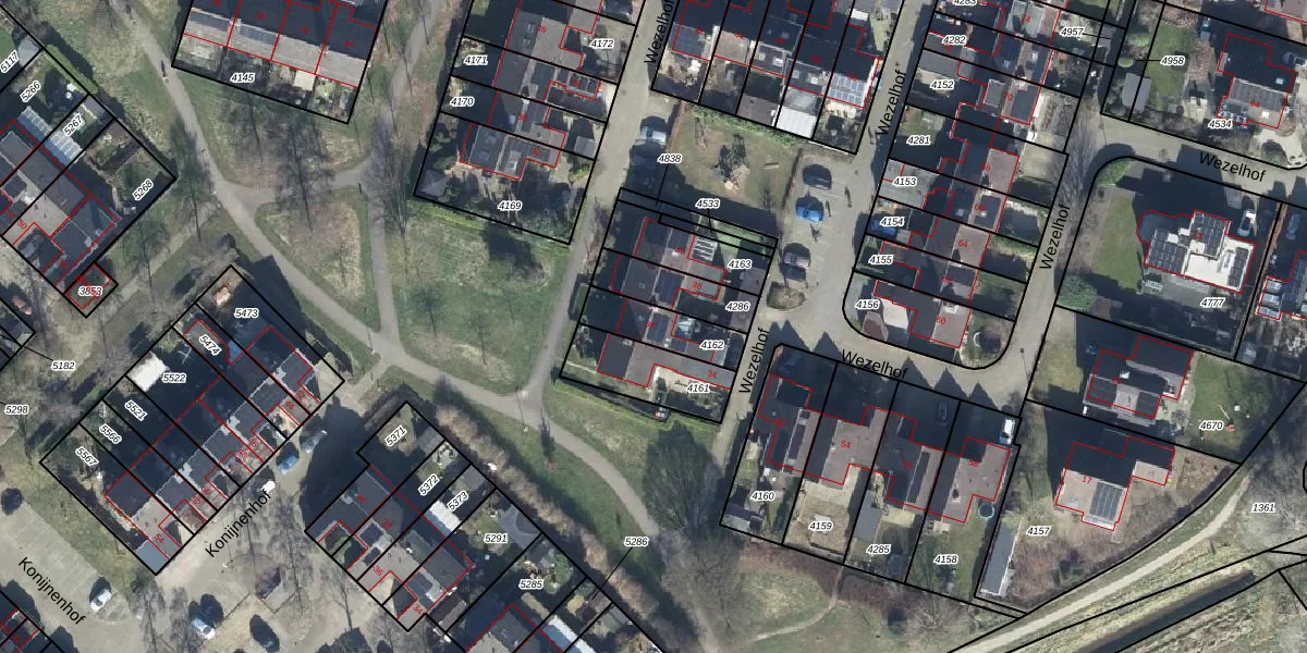 Het perceel waarop Wezelhof 36 staat heeft een oppervlakte van 154 m². Dit is een middelgroot perceel. De perceeloppervlakte wordt geregistreerd door het Kadaster. Gedetailleerde informatie over de maten van dit perceel kunt u vinden in het rapport Kadastrale kaart met maatvoering van Wezelhof 36.