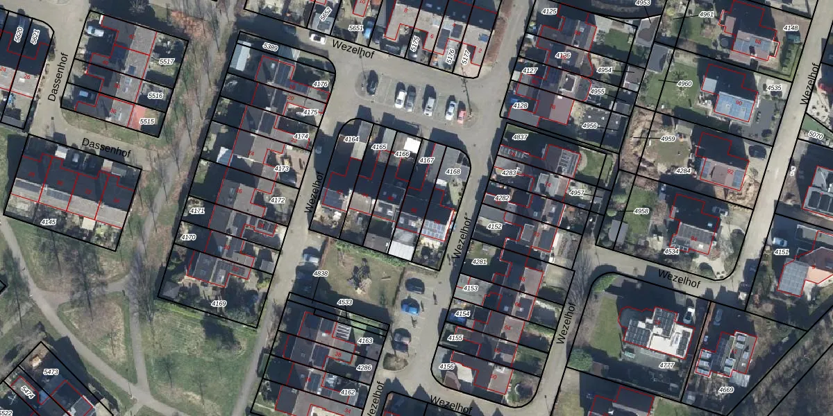 Het perceel waarop Wezelhof 48 staat heeft een oppervlakte van 177 m². Dit is een middelgroot perceel. De perceeloppervlakte wordt geregistreerd door het Kadaster. Gedetailleerde informatie over de maten van dit perceel kunt u vinden in het rapport Kadastrale kaart met maatvoering van Wezelhof 48.