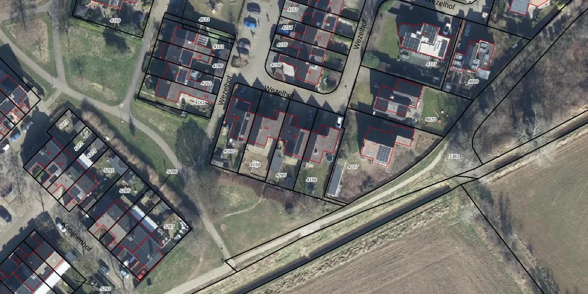 Het perceel waarop Wezelhof 56 staat heeft een oppervlakte van 282 m². Dit is een middelgroot perceel. De perceeloppervlakte wordt geregistreerd door het Kadaster. Gedetailleerde informatie over de maten van dit perceel kunt u vinden in het rapport Kadastrale kaart met maatvoering van Wezelhof 56.