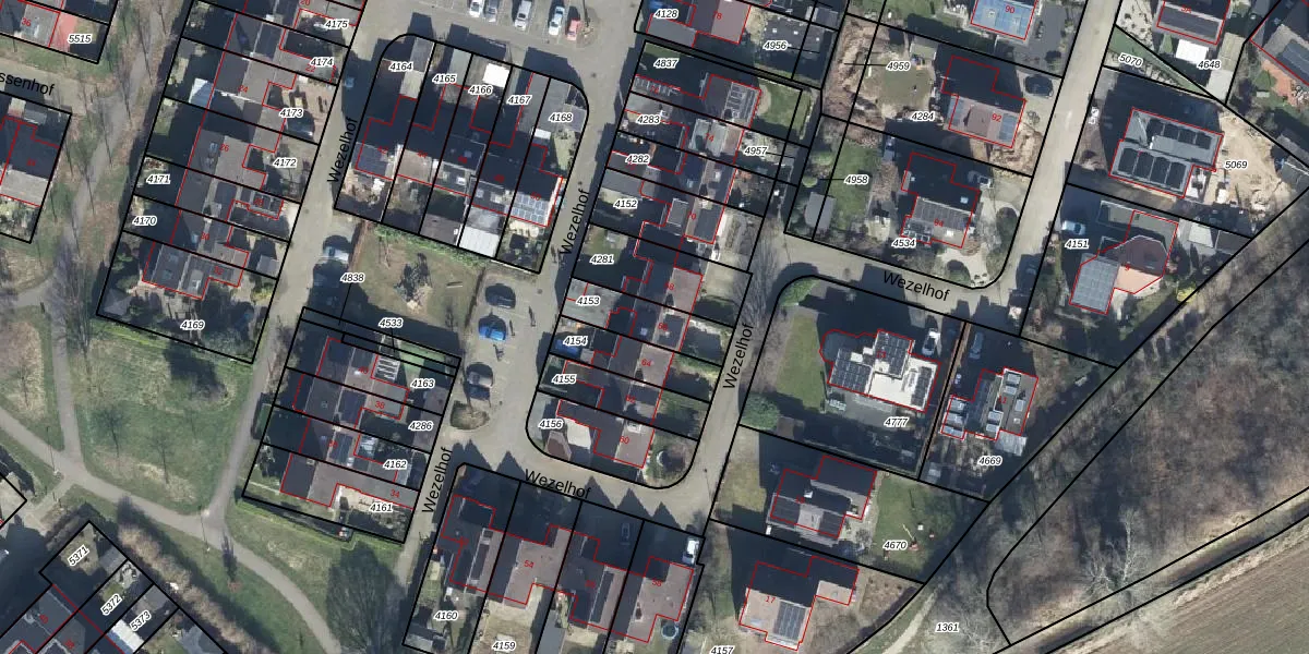 Het perceel waarop Wezelhof 66 staat heeft een oppervlakte van 160 m². Dit is een middelgroot perceel. De perceeloppervlakte wordt geregistreerd door het Kadaster. Gedetailleerde informatie over de maten van dit perceel kunt u vinden in het rapport Kadastrale kaart met maatvoering van Wezelhof 66.