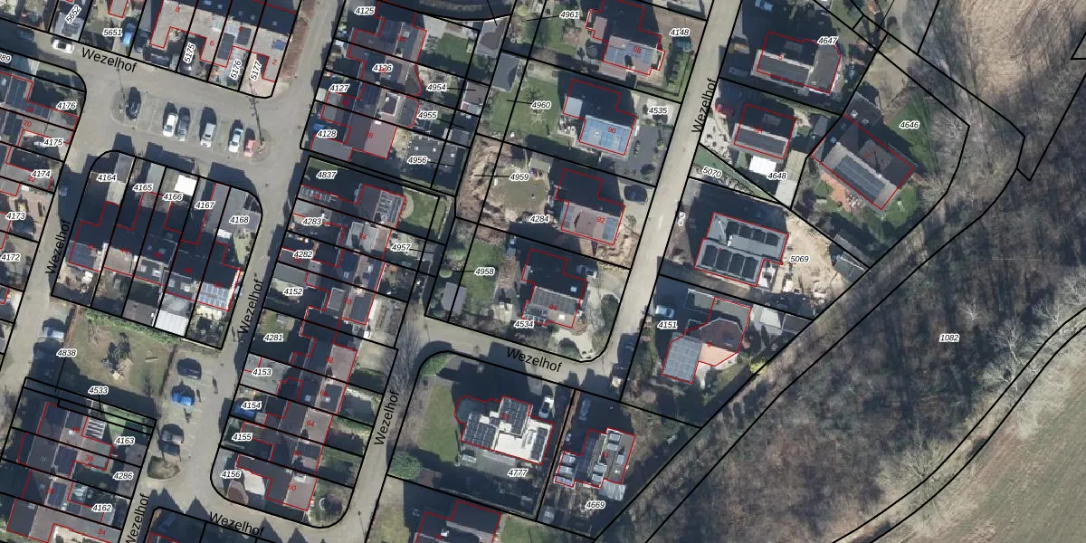 Het perceel waarop Wezelhof 94 staat heeft een oppervlakte van 560 m². Dit is een groot perceel. De perceeloppervlakte wordt geregistreerd door het Kadaster. Gedetailleerde informatie over de maten van dit perceel kunt u vinden in het rapport Kadastrale kaart met maatvoering van Wezelhof 94.