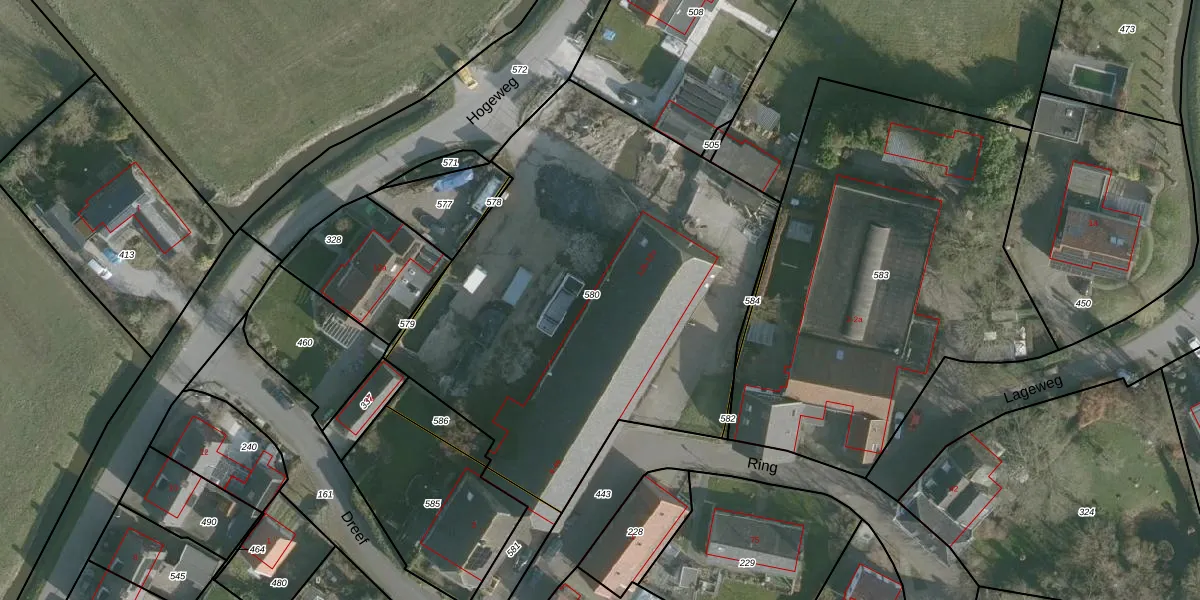 Het perceel waarop Hogeweg 12-g staat heeft een oppervlakte van 2569 m². Dit is een zeer groot perceel. De perceeloppervlakte wordt geregistreerd door het Kadaster. Gedetailleerde informatie over de maten van dit perceel kunt u vinden in het rapport Kadastrale kaart met maatvoering van Hogeweg 12-g.
