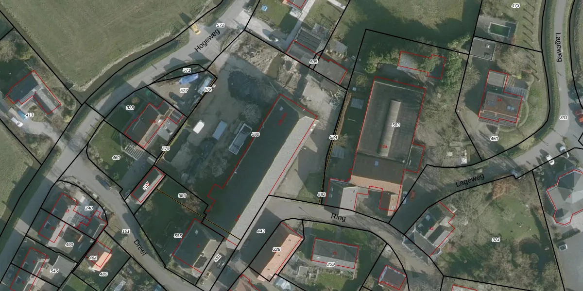 Het perceel waarop Hogeweg 12-k staat heeft een oppervlakte van 2569 m². Dit is een zeer groot perceel. De perceeloppervlakte wordt geregistreerd door het Kadaster. Gedetailleerde informatie over de maten van dit perceel kunt u vinden in het rapport Kadastrale kaart met maatvoering van Hogeweg 12-k.
