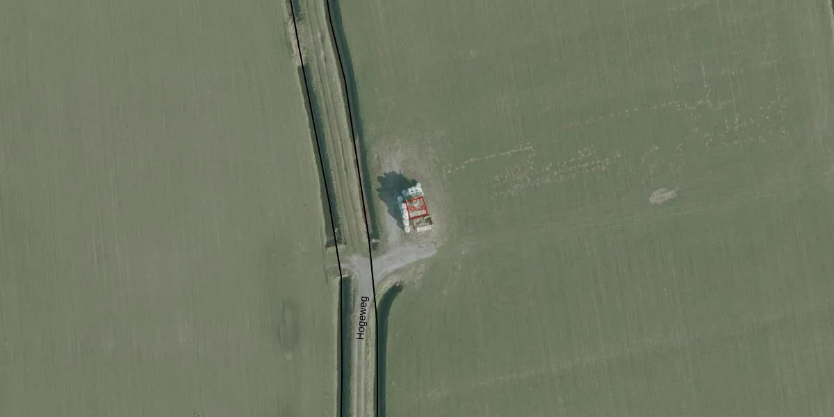 Het perceel waarop Hogeweg 22-b staat heeft een oppervlakte van 5,0 ha. Dit is een zeer groot perceel. De perceeloppervlakte wordt geregistreerd door het Kadaster. Gedetailleerde informatie over de maten van dit perceel kunt u vinden in het rapport Kadastrale kaart met maatvoering van Hogeweg 22-b.