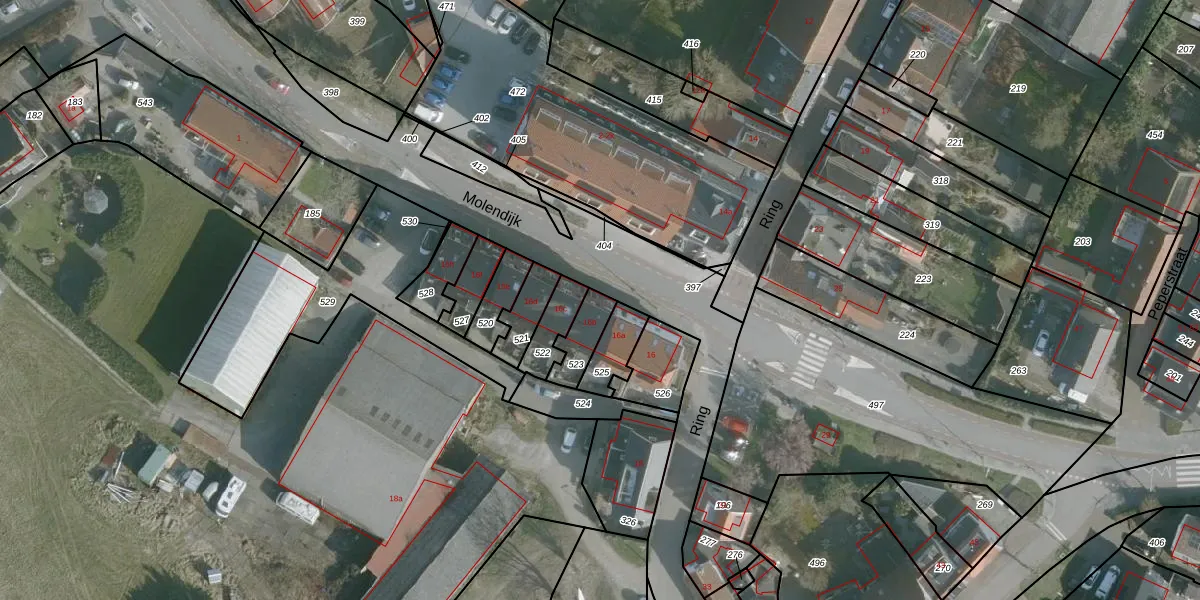 Het perceel waarop Ring 16-b staat heeft een oppervlakte van 87 m². Dit is een klein perceel. De perceeloppervlakte wordt geregistreerd door het Kadaster. Gedetailleerde informatie over de maten van dit perceel kunt u vinden in het rapport Kadastrale kaart met maatvoering van Ring 16-b.