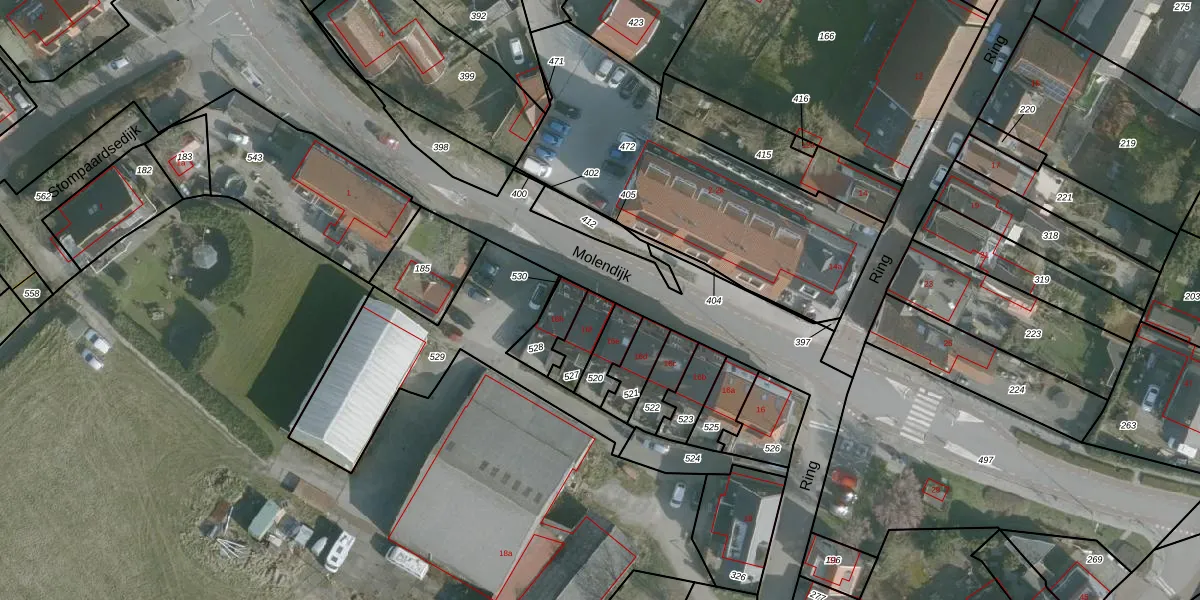 Gebruik de zoekbalk of klik op een perceel voor informatie over de adressen binnen dit perceel.