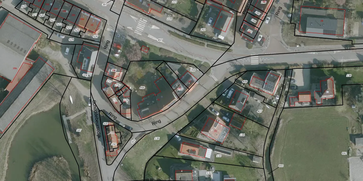 Het perceel waarop Ring 43 staat heeft een oppervlakte van 135 m². Dit is een middelgroot perceel. De perceeloppervlakte wordt geregistreerd door het Kadaster. Gedetailleerde informatie over de maten van dit perceel kunt u vinden in het rapport Kadastrale kaart met maatvoering van Ring 43.