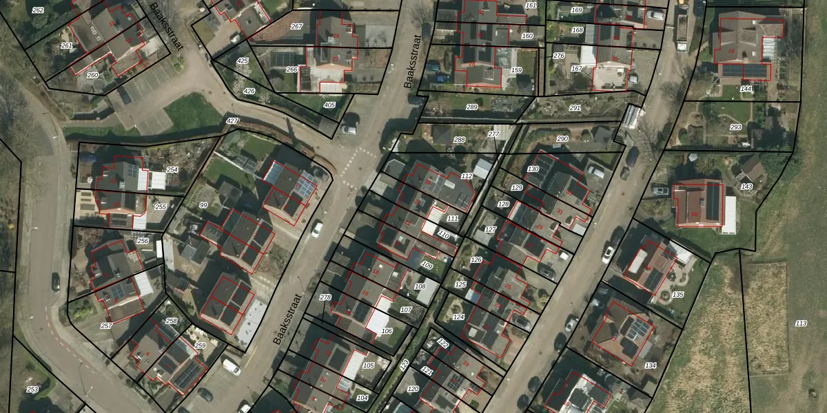 Het perceel waarop Baaksstraat 24 staat heeft een oppervlakte van 130 m². Dit is een middelgroot perceel. De perceeloppervlakte wordt geregistreerd door het Kadaster. Gedetailleerde informatie over de maten van dit perceel kunt u vinden in het rapport Kadastrale kaart met maatvoering van Baaksstraat 24.