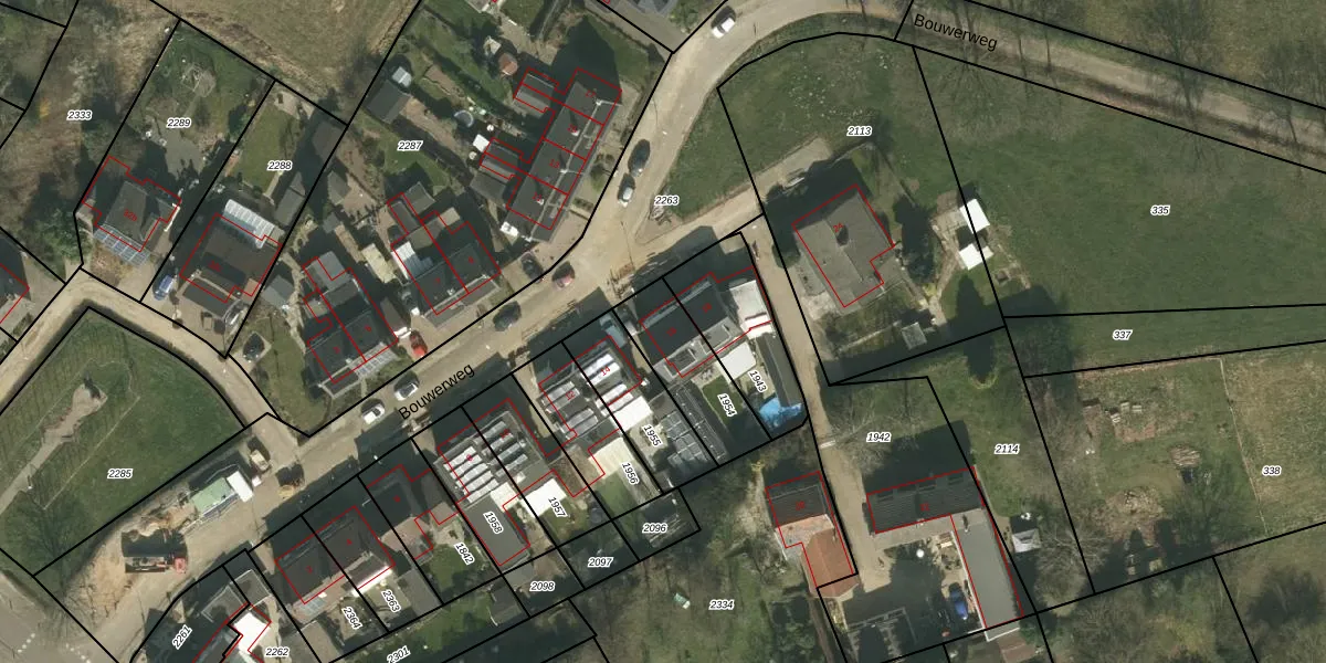 Bouwerweg 16 is gelegen op kadastraal perceel SPV00A1954. Deze kadastrale aanduiding is uniek en wordt gebruikt door het Kadaster om eigendomsrechten en andere zakelijke rechten vast te leggen. Het perceel maakt onderdeel uit van de kadastrale gemeente Simpelveld.