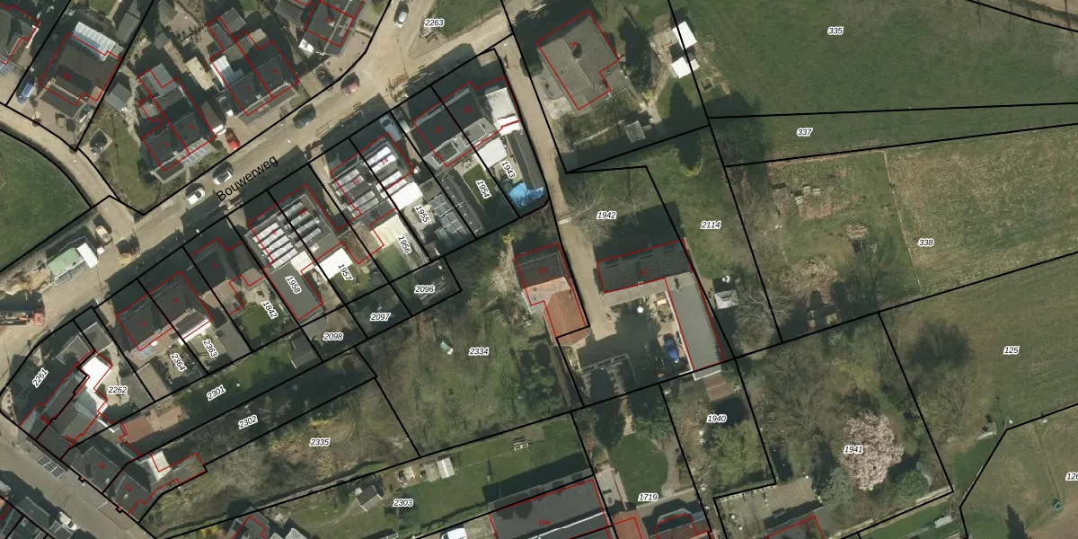 Bouwerweg 20 is gelegen op kadastraal perceel SPV00A2334. Deze kadastrale aanduiding is uniek en wordt gebruikt door het Kadaster om eigendomsrechten en andere zakelijke rechten vast te leggen. Het perceel maakt onderdeel uit van de kadastrale gemeente Simpelveld.