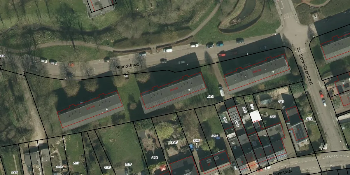 Het perceel waarop Brandstraat 141 staat heeft een oppervlakte van 3870 m². Dit is een zeer groot perceel. De perceeloppervlakte wordt geregistreerd door het Kadaster. Gedetailleerde informatie over de maten van dit perceel kunt u vinden in het rapport Kadastrale kaart met maatvoering van Brandstraat 141.