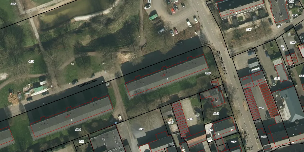 Het perceel waarop Brandstraat 25 staat heeft een oppervlakte van 5575 m². Dit is een zeer groot perceel. De perceeloppervlakte wordt geregistreerd door het Kadaster. Gedetailleerde informatie over de maten van dit perceel kunt u vinden in het rapport Kadastrale kaart met maatvoering van Brandstraat 25.