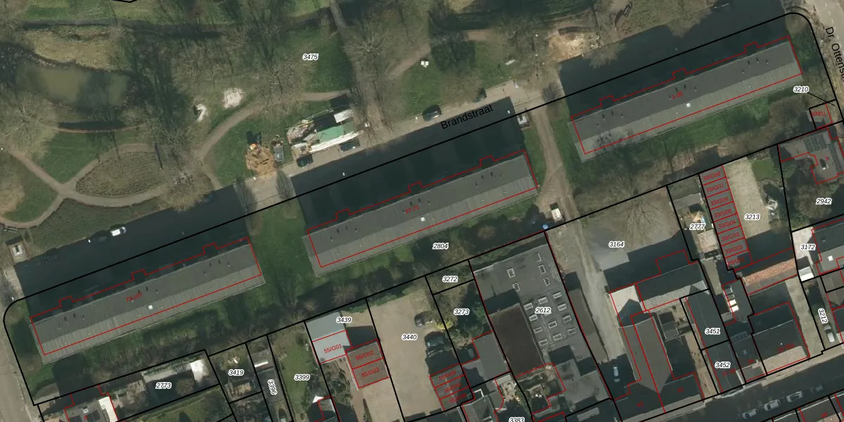 Het perceel waarop Brandstraat 37-G01 staat heeft een oppervlakte van 5575 m². Dit is een zeer groot perceel. De perceeloppervlakte wordt geregistreerd door het Kadaster. Gedetailleerde informatie over de maten van dit perceel kunt u vinden in het rapport Kadastrale kaart met maatvoering van Brandstraat 37-G01.
