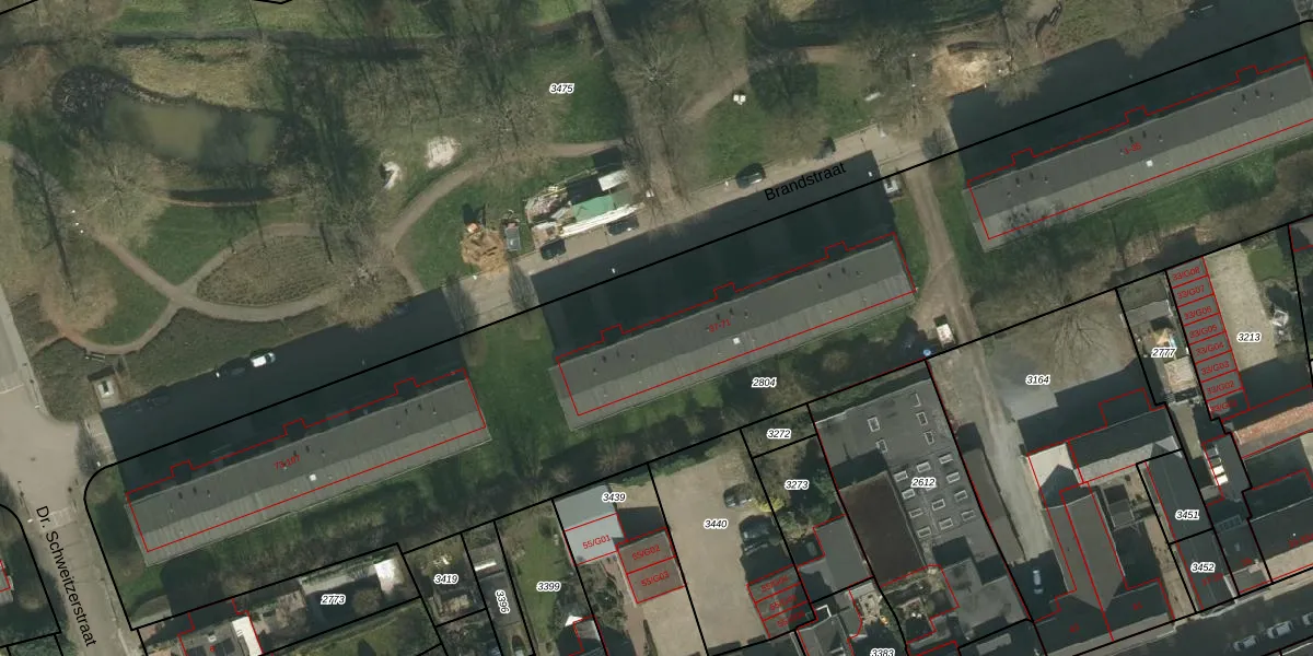 Het perceel waarop Brandstraat 61 staat heeft een oppervlakte van 5575 m². Dit is een zeer groot perceel. De perceeloppervlakte wordt geregistreerd door het Kadaster. Gedetailleerde informatie over de maten van dit perceel kunt u vinden in het rapport Kadastrale kaart met maatvoering van Brandstraat 61.