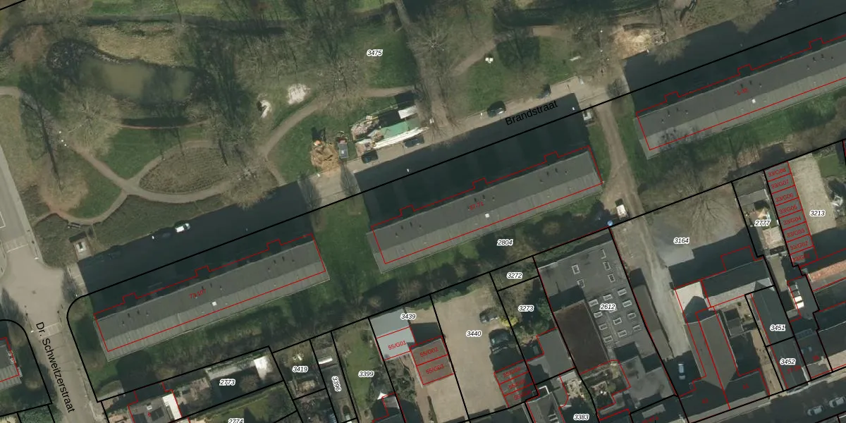Het perceel waarop Brandstraat 63 staat heeft een oppervlakte van 5575 m². Dit is een zeer groot perceel. De perceeloppervlakte wordt geregistreerd door het Kadaster. Gedetailleerde informatie over de maten van dit perceel kunt u vinden in het rapport Kadastrale kaart met maatvoering van Brandstraat 63.