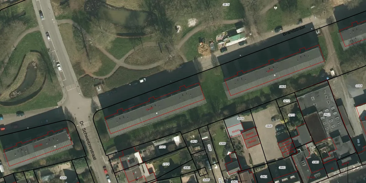 Het perceel waarop Brandstraat 77 staat heeft een oppervlakte van 5575 m². Dit is een zeer groot perceel. De perceeloppervlakte wordt geregistreerd door het Kadaster. Gedetailleerde informatie over de maten van dit perceel kunt u vinden in het rapport Kadastrale kaart met maatvoering van Brandstraat 77.