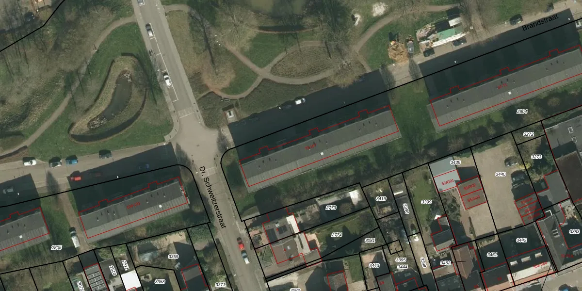 Het perceel waarop Brandstraat 95 staat heeft een oppervlakte van 5575 m². Dit is een zeer groot perceel. De perceeloppervlakte wordt geregistreerd door het Kadaster. Gedetailleerde informatie over de maten van dit perceel kunt u vinden in het rapport Kadastrale kaart met maatvoering van Brandstraat 95.