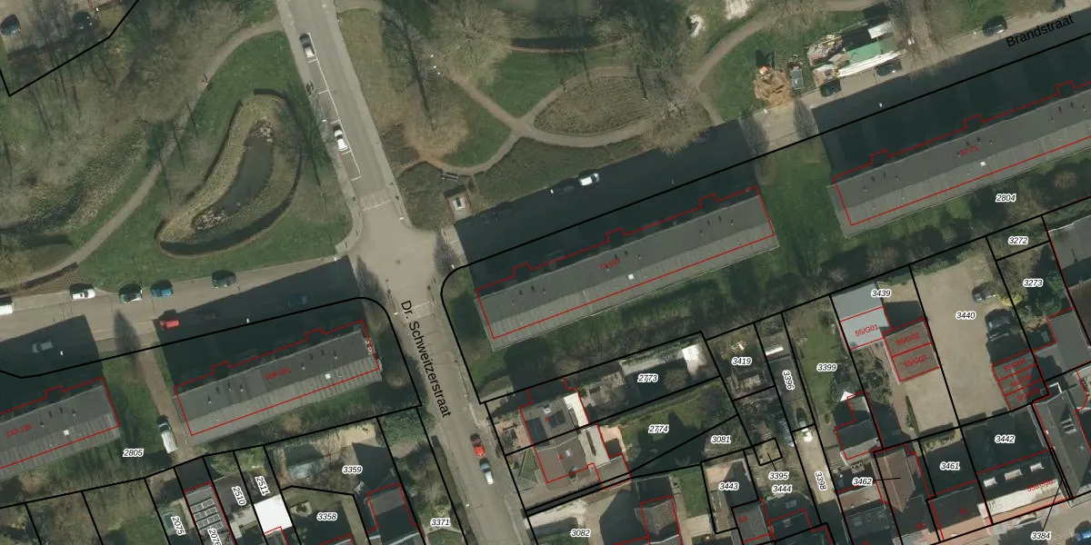 Het perceel waarop Brandstraat 99 staat heeft een oppervlakte van 5575 m². Dit is een zeer groot perceel. De perceeloppervlakte wordt geregistreerd door het Kadaster. Gedetailleerde informatie over de maten van dit perceel kunt u vinden in het rapport Kadastrale kaart met maatvoering van Brandstraat 99.