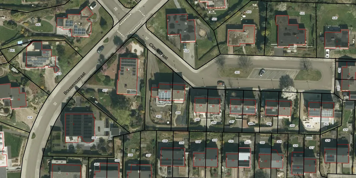 Clovisstraat 15 is gelegen op kadastraal perceel SPV00E344. Deze kadastrale aanduiding is uniek en wordt gebruikt door het Kadaster om eigendomsrechten en andere zakelijke rechten vast te leggen. Het perceel maakt onderdeel uit van de kadastrale gemeente Simpelveld.