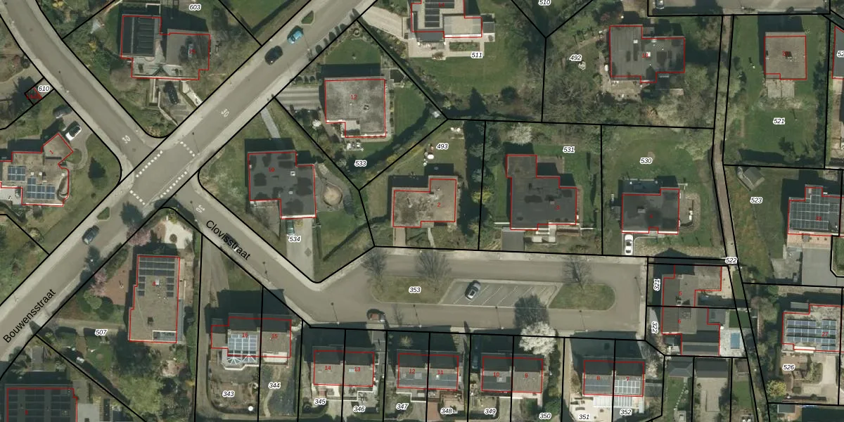 Het perceel waarop Clovisstraat 2 staat heeft een oppervlakte van 692 m². Dit is een groot perceel. De perceeloppervlakte wordt geregistreerd door het Kadaster. Gedetailleerde informatie over de maten van dit perceel kunt u vinden in het rapport Kadastrale kaart met maatvoering van Clovisstraat 2.