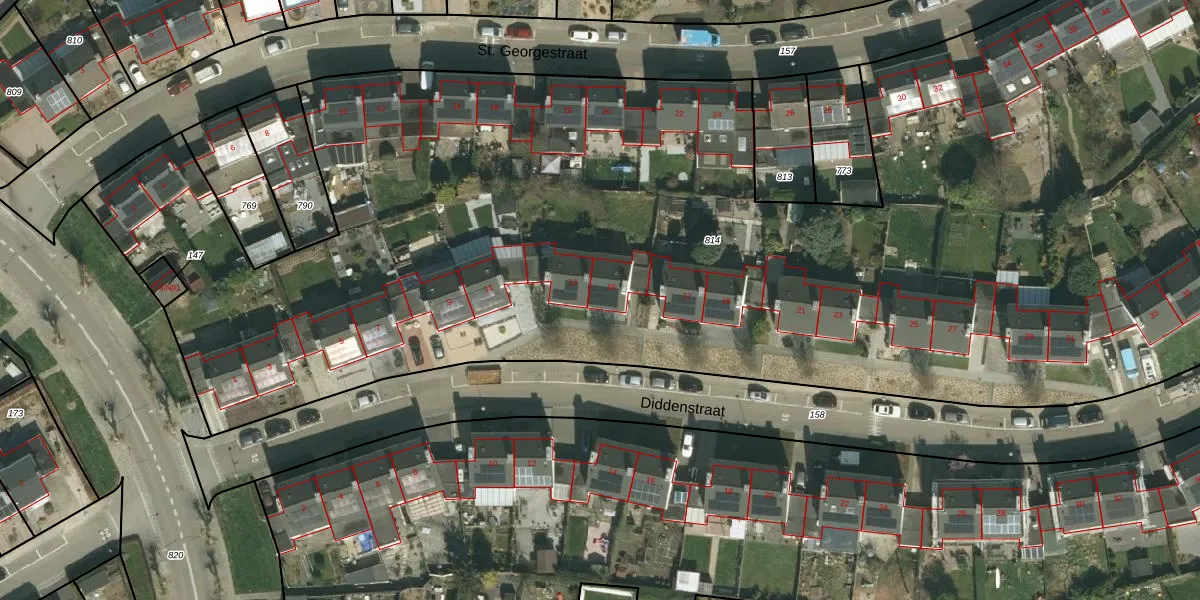 Diddenstraat 15 is gelegen op kadastraal perceel SPV00E814. Deze kadastrale aanduiding is uniek en wordt gebruikt door het Kadaster om eigendomsrechten en andere zakelijke rechten vast te leggen. Het perceel maakt onderdeel uit van de kadastrale gemeente Simpelveld.