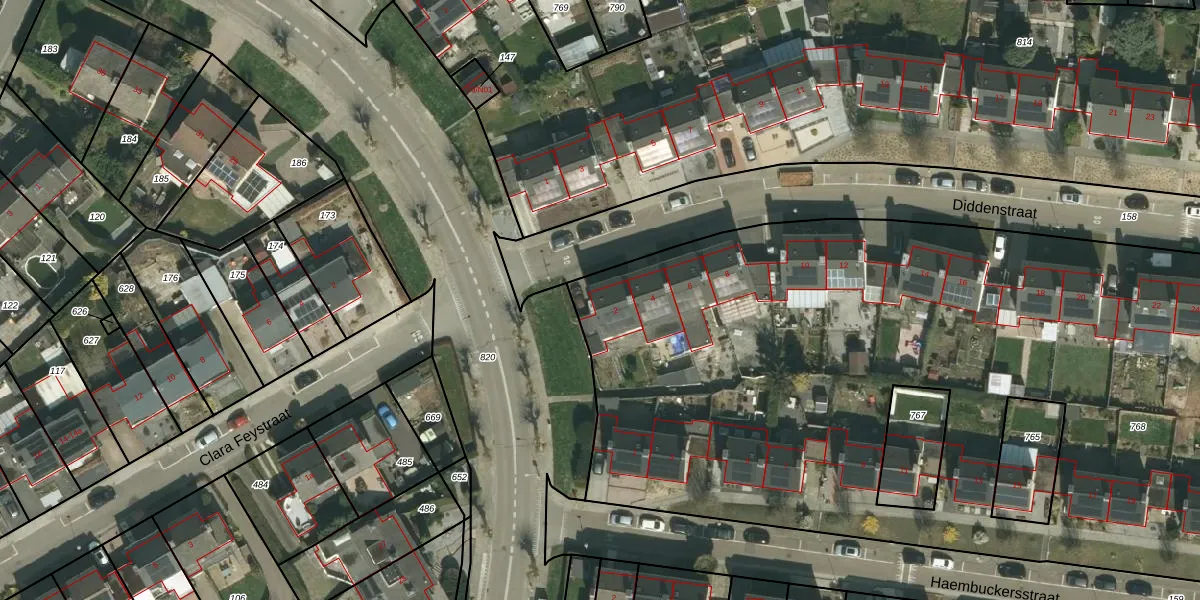 Diddenstraat 2 is gelegen op kadastraal perceel SPV00E768. Deze kadastrale aanduiding is uniek en wordt gebruikt door het Kadaster om eigendomsrechten en andere zakelijke rechten vast te leggen. Het perceel maakt onderdeel uit van de kadastrale gemeente Simpelveld.
