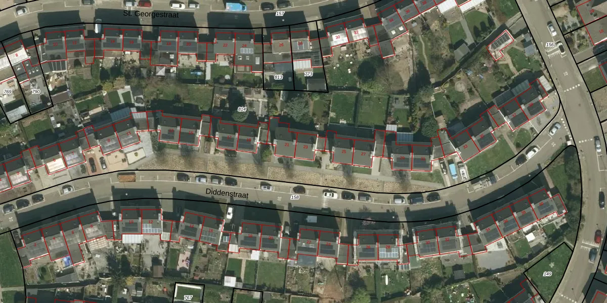 Diddenstraat 23 is gelegen op kadastraal perceel SPV00E814. Deze kadastrale aanduiding is uniek en wordt gebruikt door het Kadaster om eigendomsrechten en andere zakelijke rechten vast te leggen. Het perceel maakt onderdeel uit van de kadastrale gemeente Simpelveld.