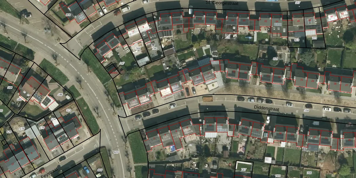 Diddenstraat 7 is gelegen op kadastraal perceel SPV00E814. Deze kadastrale aanduiding is uniek en wordt gebruikt door het Kadaster om eigendomsrechten en andere zakelijke rechten vast te leggen. Het perceel maakt onderdeel uit van de kadastrale gemeente Simpelveld.