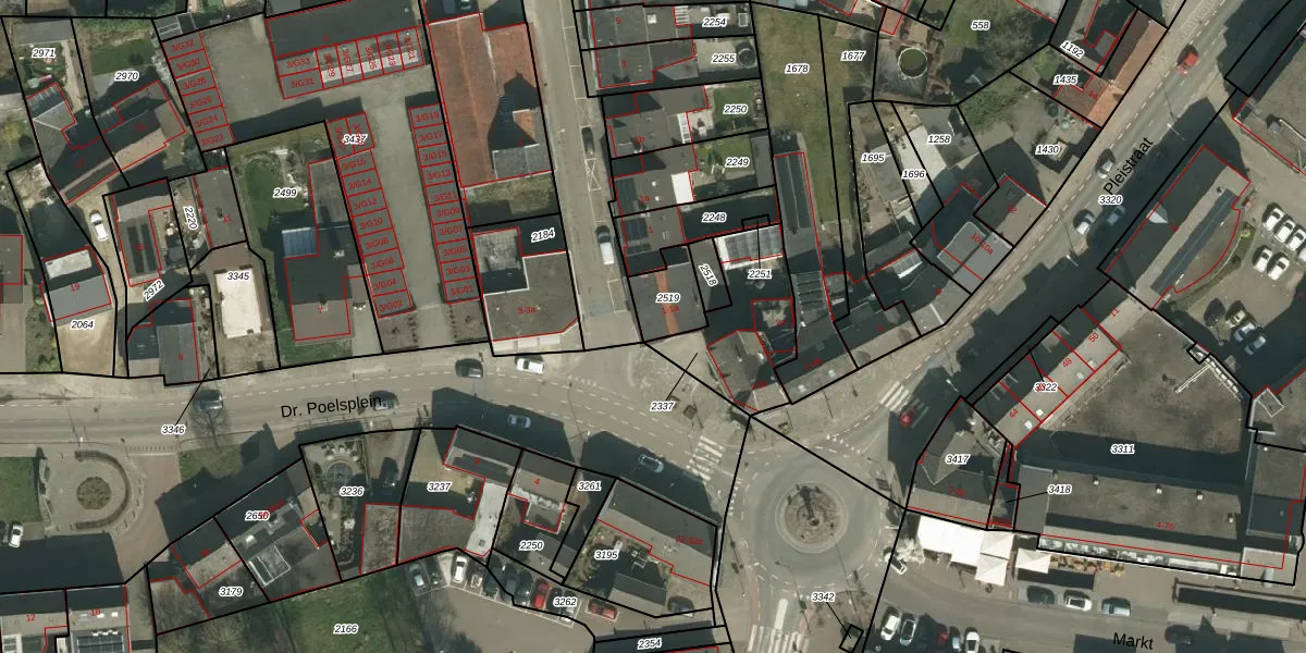 Dr. Poelsplein 1 is gelegen op kadastraal perceel SPV00A2519. Deze kadastrale aanduiding is uniek en wordt gebruikt door het Kadaster om eigendomsrechten en andere zakelijke rechten vast te leggen. Het perceel maakt onderdeel uit van de kadastrale gemeente Simpelveld.